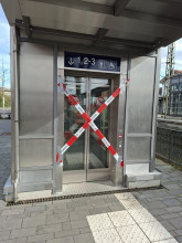 Bis zur technischen Überprüfung des Fahrstuhls wurde dieser durch uns gesperrt.