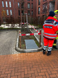 Der vor uns eintreffende Rettungsdienst konnte zumindest soweit Entwarnung geben, dass der Patient nicht aufwendig über den Belüftungsschacht gerettet werden musste. Er war über Treppen gut zugänglich und wurde daher zügig durch den Rettungsdienst medizinisch versorgt.