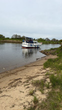 Am Montag hatten wir eine Reihe von Einsätzen abzuarbeiten. Gegen Mittag ging es zunächst nach Bollen, wo ein Sportboot auf eine Sandbank gelaufen war und zu kenter drohte.